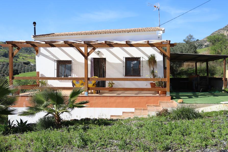 This lovely bright, 2 bedroom country house enjoys a great location in the area known as Canca in the countryside between the Andalucian pueblos of Álora and Pizarra and just 40 minutes drive from Málaga city and international airport. Set within a relatively flat plot of land of approx 10,000m2 planted out with olives and other trees and hosting open views of the Andalucian countryside, the property has a total build size of approx 160m2 . The main living accommodation at upper garden level extends to 64m2 comprising of an open plan living room/ dining room/ kitchen, 2 bedrooms and a bright modern shower room. There is also a 32m2 mezzanine level. The living room hosts a woodburning stove . Directly off the living room is a fabulous 32m2 South facing terrace ideal for " al fresco" dining and hosting lovely views of the Andalucian countryside. At lower garden level there is a 96m2 semi- basement currently used as a garage / store room. The basement has a ceiling height of 2.2m offering potential for exploitation for a variety of uses such as a workshop, artist's studio , gym or possibly even additional living accommodation. A 32m2 " cobertizo " at upper garden level completes the accommodation on offer. Mains electricity is connected and mains water is available and the property benefits from the latest " oxidación total" waste water system. This property although enjoying a rural location has good access via a level, minor country road and is less than 10 minutes drive from either Alora or Pizarra pueblos and the wide range of amenities offered by both of those towns , both of which enjoy a cheap and reliable train connection to Malaga city and international airport and right along the coast as far as Fuengirola. This property is ideal for use as a permanent or holiday home and is sold furnished. It has the SAFO license.
